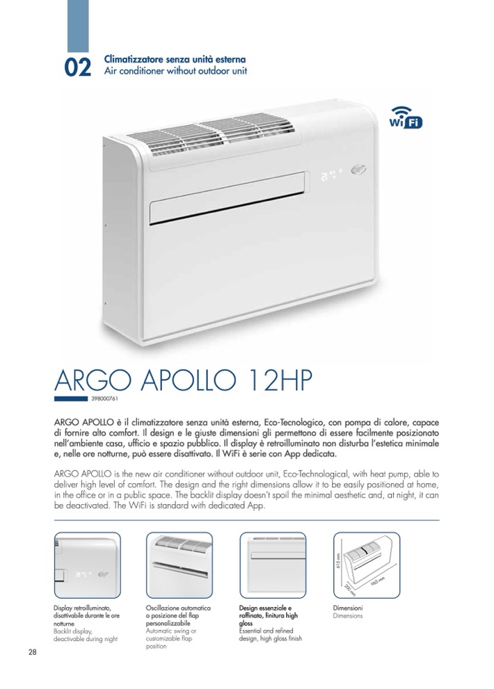 ARGO APOLLO is the new air conditioner without outdoor unit, Eco-Technological, with heat pump, able to