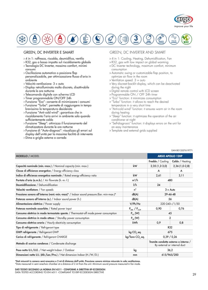 DATA TESTED ACCORDING TO EN14511 -COMPLIANT TO ERP-ECODESIGN DIRECTIVE