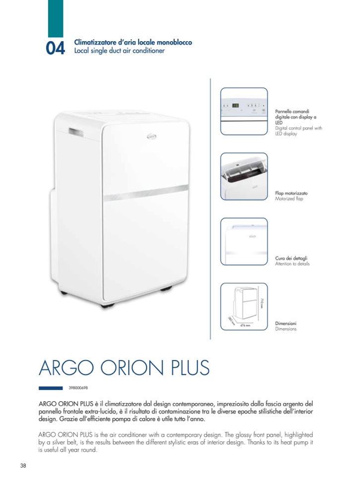 ARGO ORION PLUS è il climatizzatore dal design contemporaneo, impreziosito dalla fascia argento del