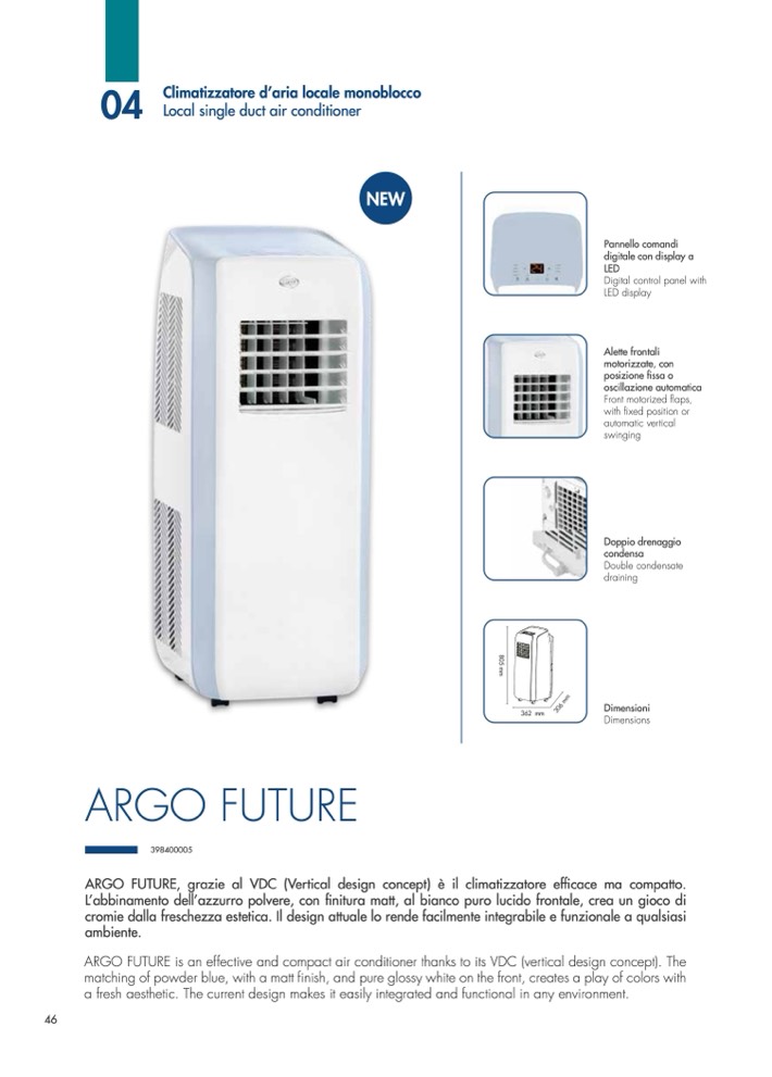 ARGO FUTURE, grazie al VDC (Vertical design concept) è il climatizzatore efficace ma compatto.