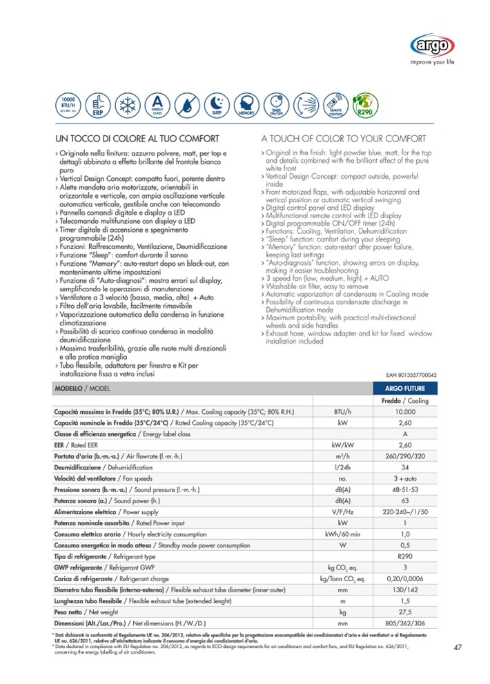 * Data declared in compliance with EU Regulation no. 206/2012, as regards to ECO-design requirements for air conditioners and comfort fans, and EU Regulation no. 626/2011,