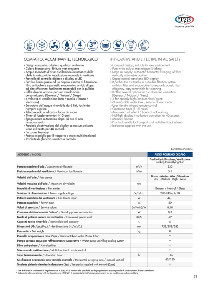 * Dati dichiarati in conformità ai Regolamenti UE n.206/2012, relativo alle specifiche per la progettazione ecocompatibile di condizionatori d’aria e ventilatori.