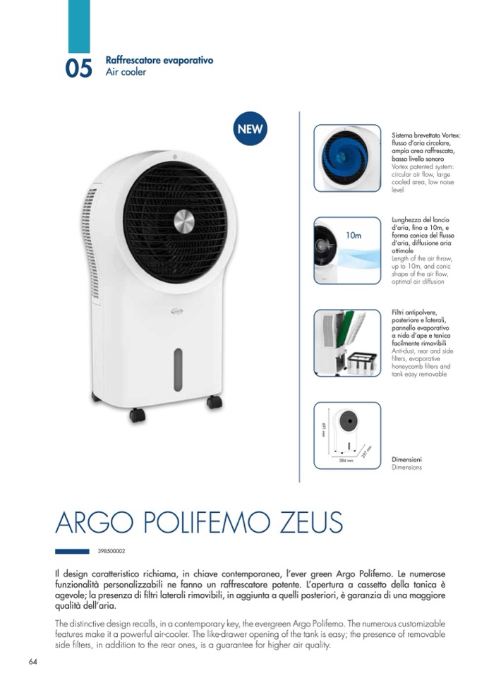 funzionalità personalizzabili ne fanno un raffrescatore potente. L’apertura a cassetto della tanica è