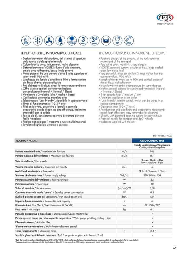 * Dati dichiarati in conformità ai Regolamenti UE n.206/2012, relativo alle specifiche per la progettazione ecocompatibile di condizionatori d’aria e ventilatori.