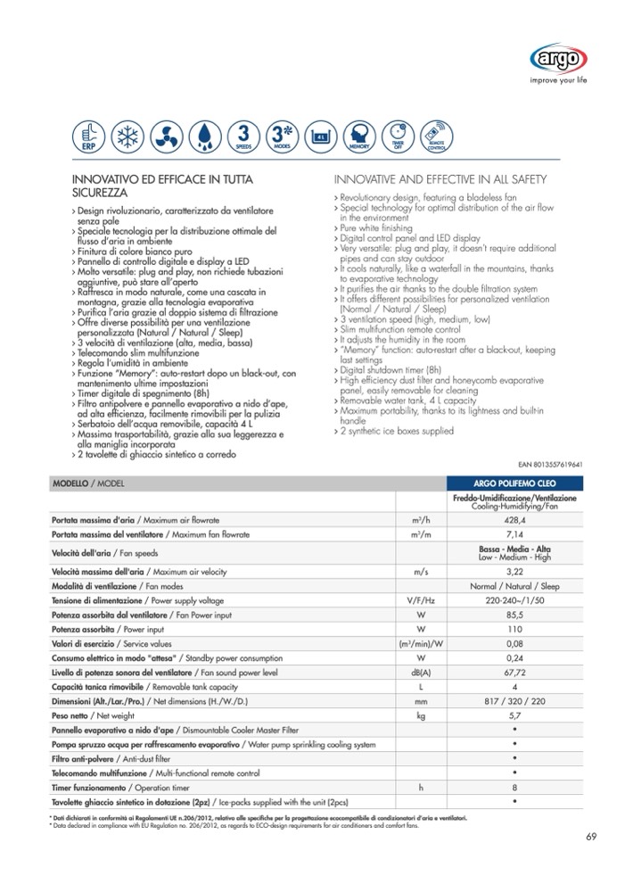 * Dati dichiarati in conformità ai Regolamenti UE n.206/2012, relativo alle specifiche per la progettazione ecocompatibile di condizionatori d’aria e ventilatori.