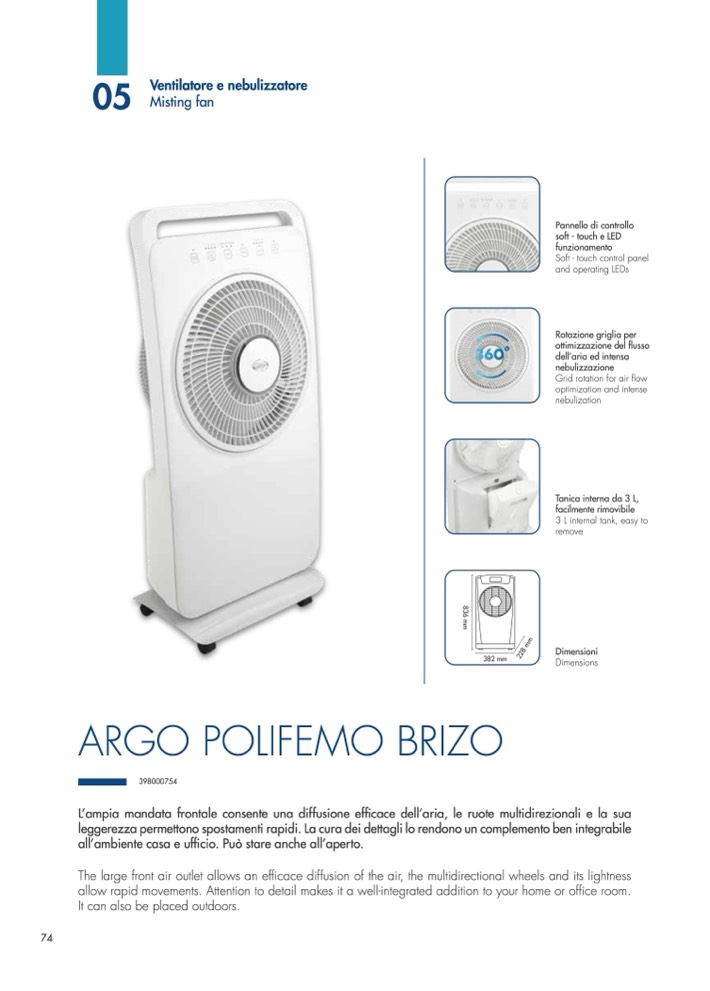 L’ampia mandata frontale consente una diffusione efficace dell’aria, le ruote multidirezionali e la sua