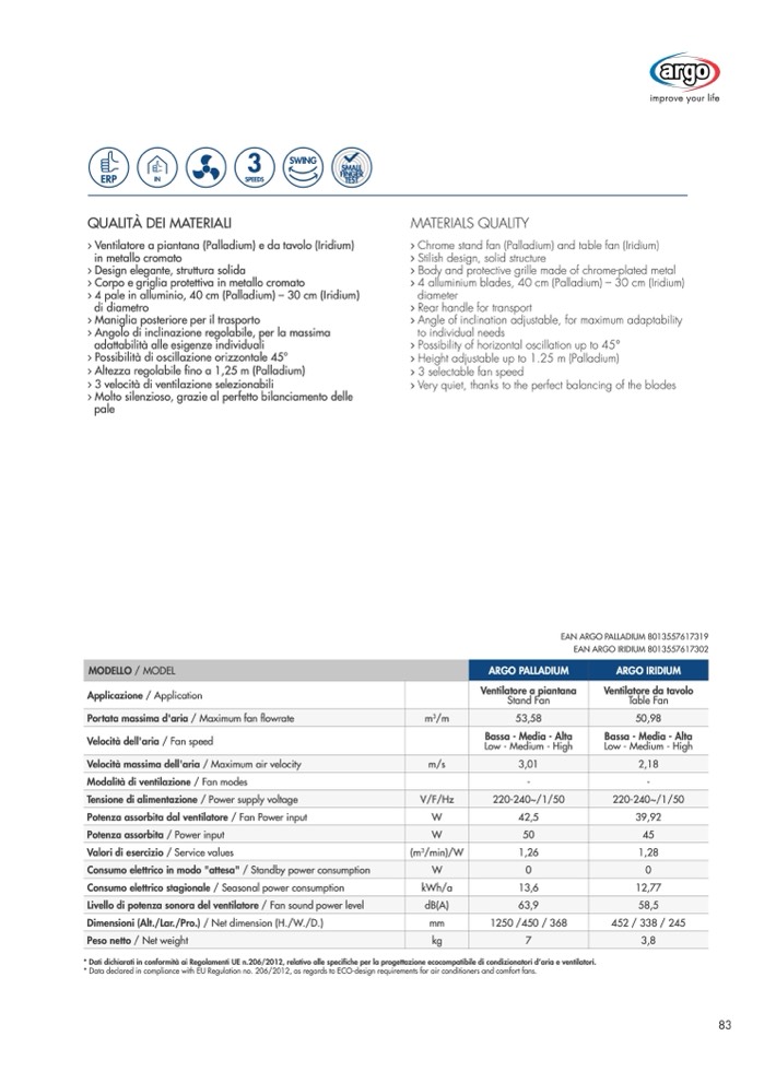 Ventilatore a piantana (Palladium) e da tavolo (Iridium)