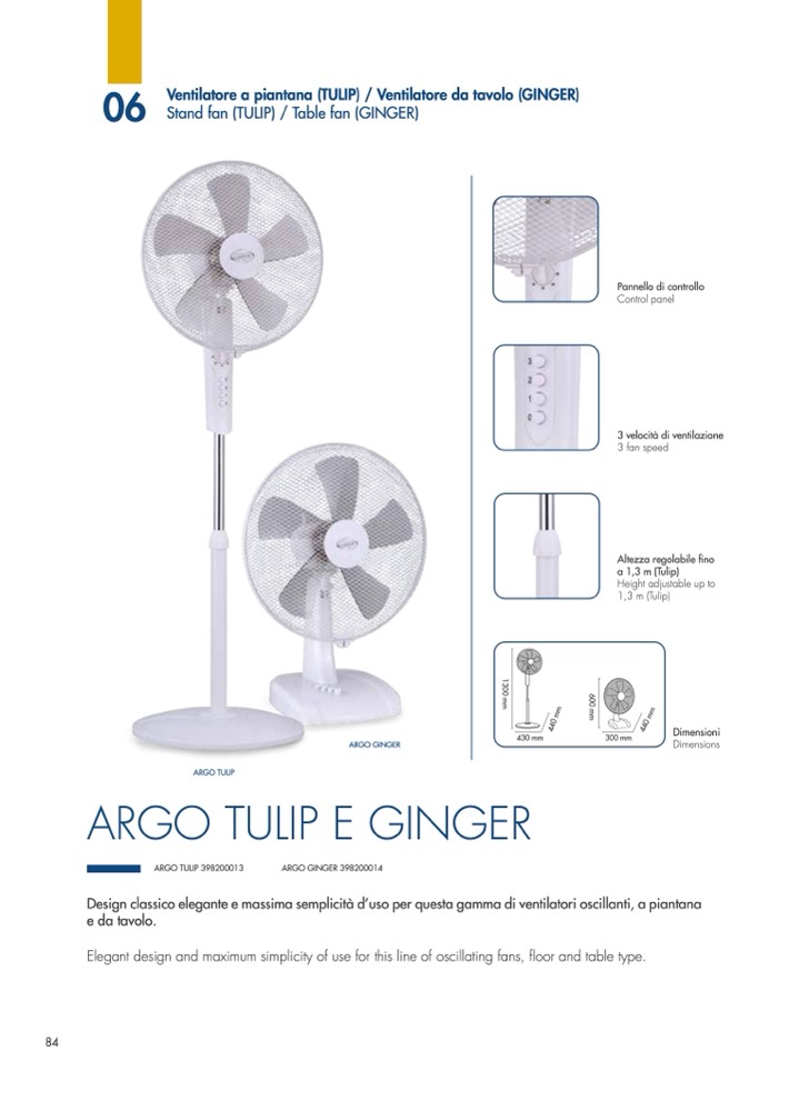 Ventilatore a piantana (TULIP) / Ventilatore da tavolo (GINGER)