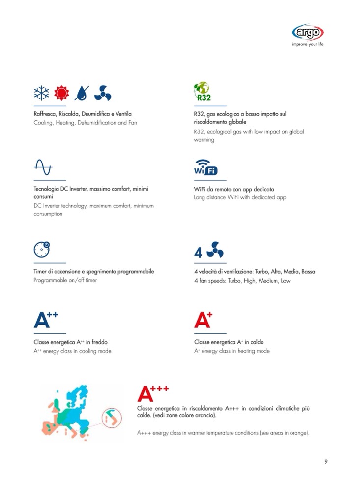A+++ energy class in warmer temperature conditions (see areas in orange).
