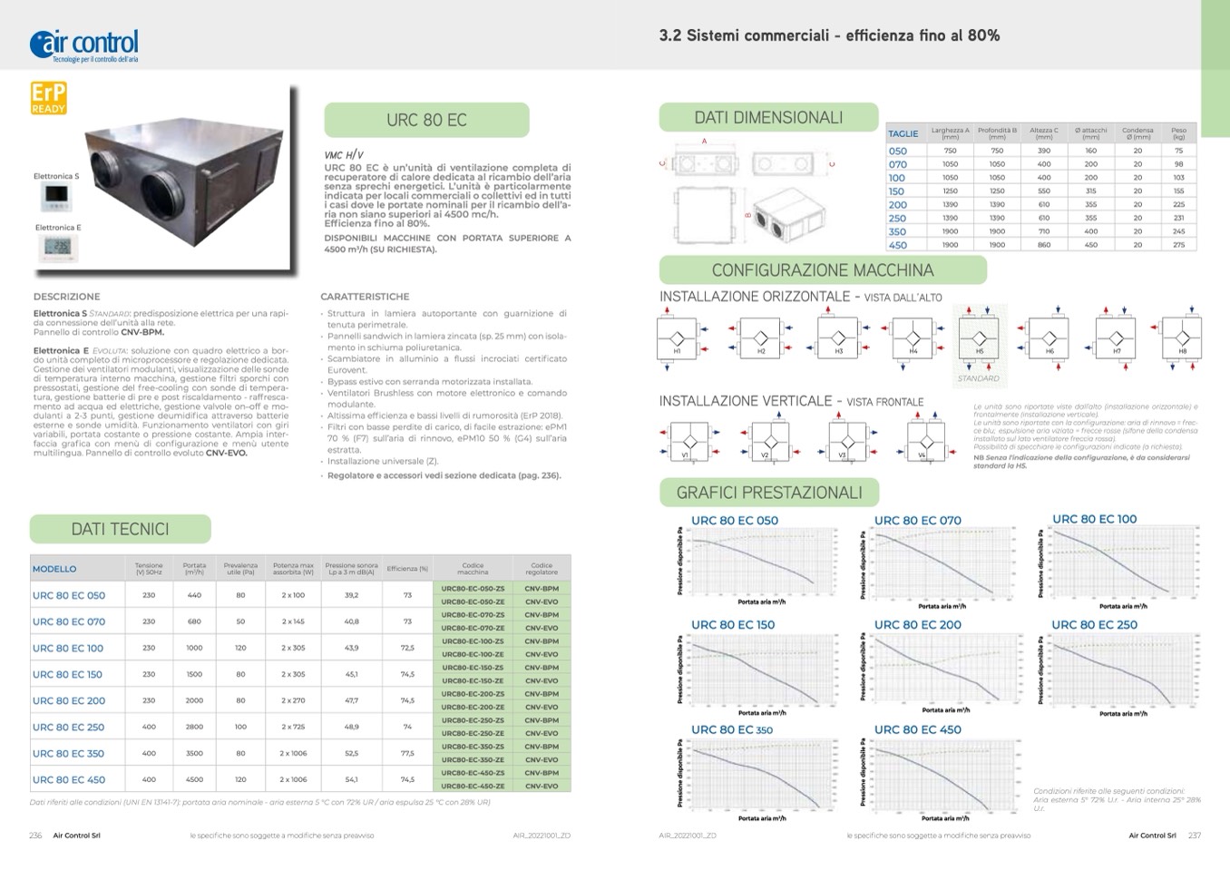 Le unità sono riportate con la configurazione: aria di rinnovo = frec-