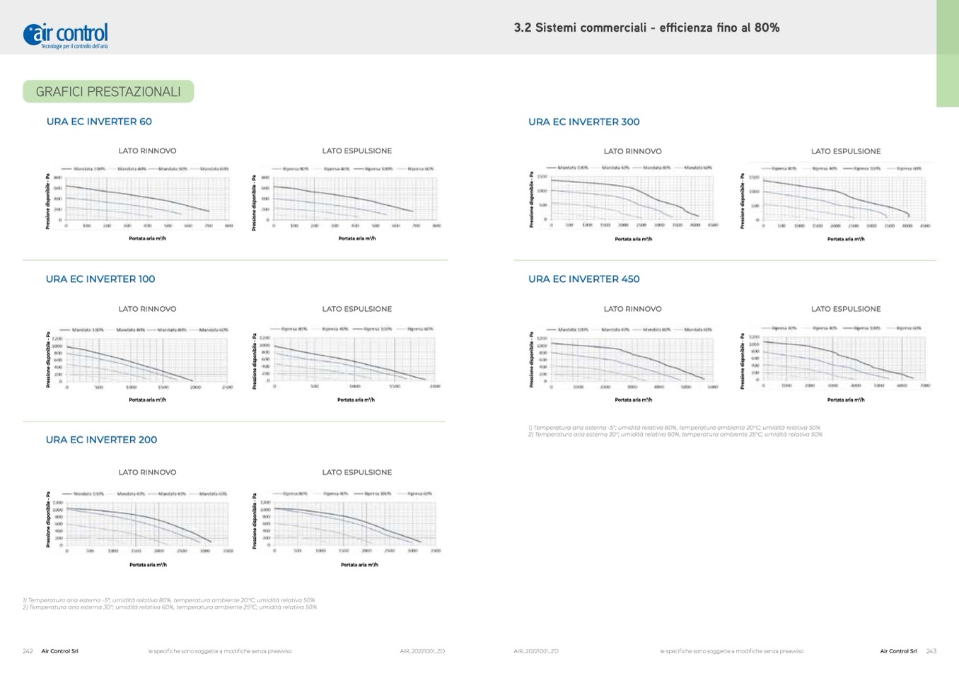 1) Temperatura aria esterna -5°; umidità relativa 80%, temperatura ambiente 20°C; umidità relativa 50%