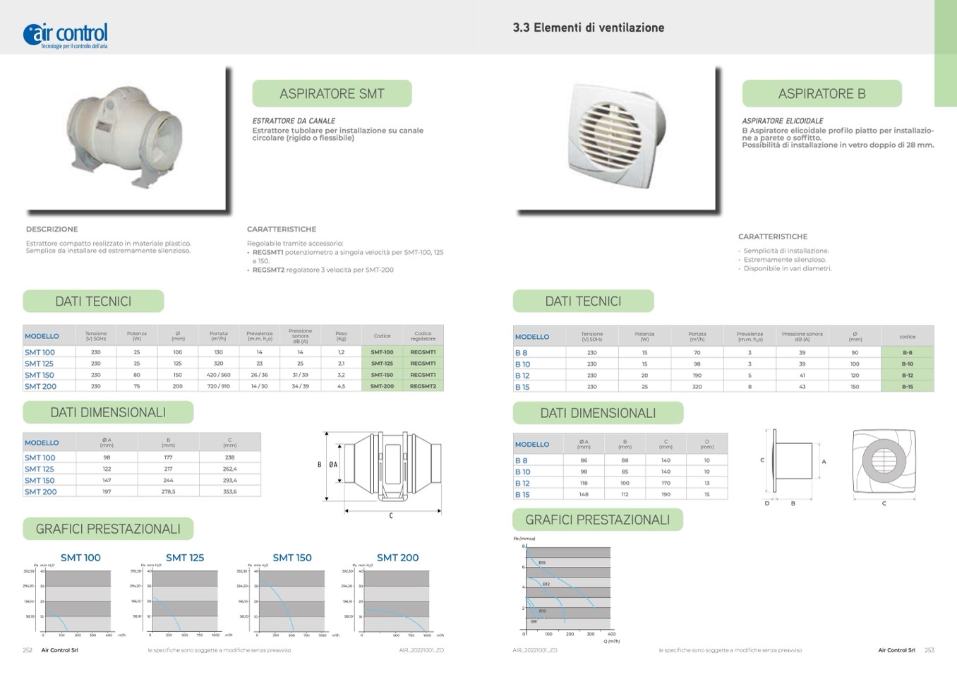 B Aspiratore elicoidale profilo piatto per installazio-