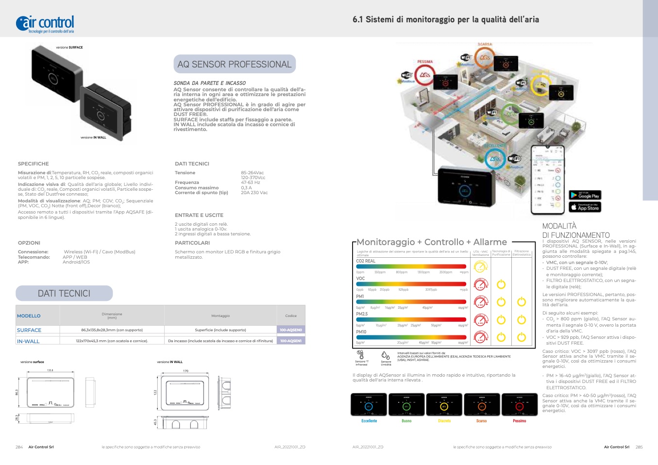 rivestimento). Il sistema di monitoraggio e controllo automatizzato AQSAFE consente di controllare la qualità dell'aria interna in ogni