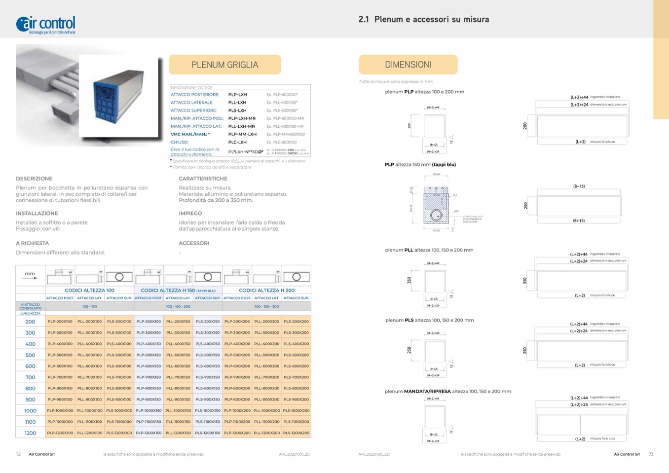 plenum PLP altezza 100 e 200 mm