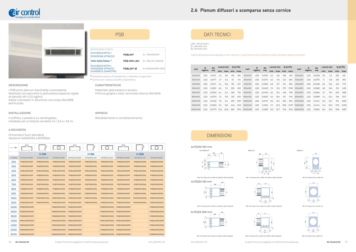 I PSB sono plenum bocchette a scomparsa.
