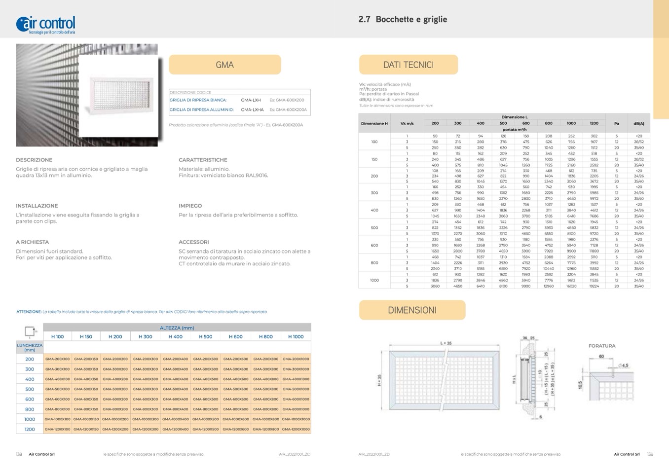GRIGLIA DI RIPRESA ALLUMINIO: