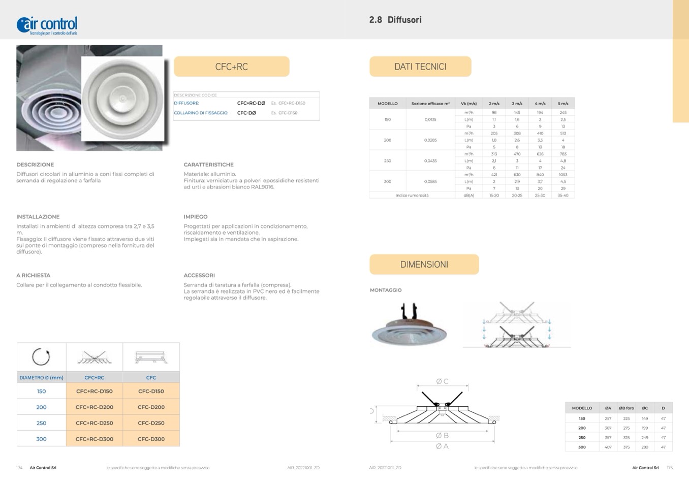 Diffusori circolari in alluminio a coni fissi completi di