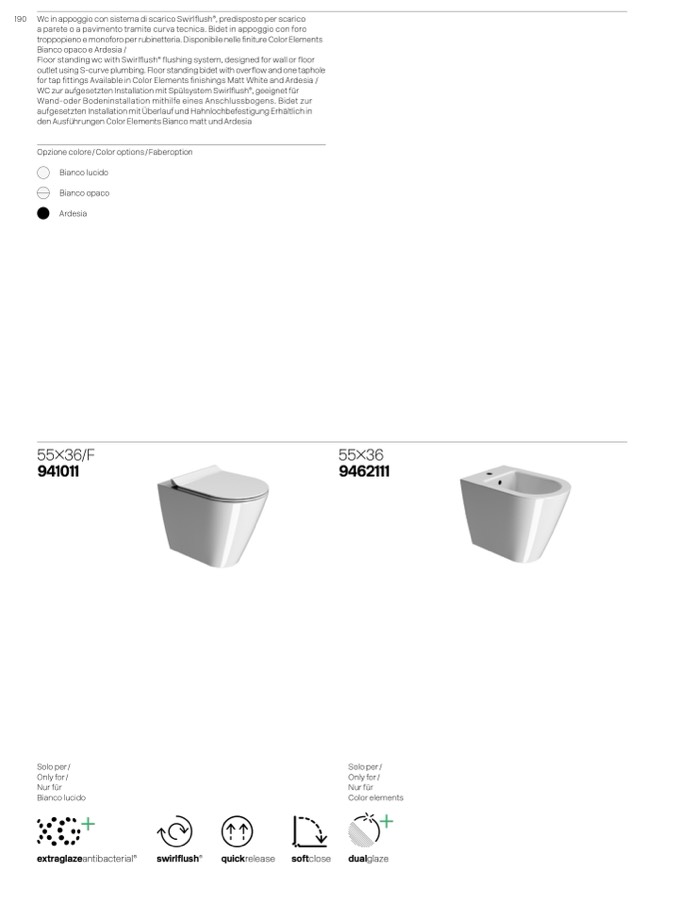 190 Wc in appoggio con sistema di scarico Swirlflush