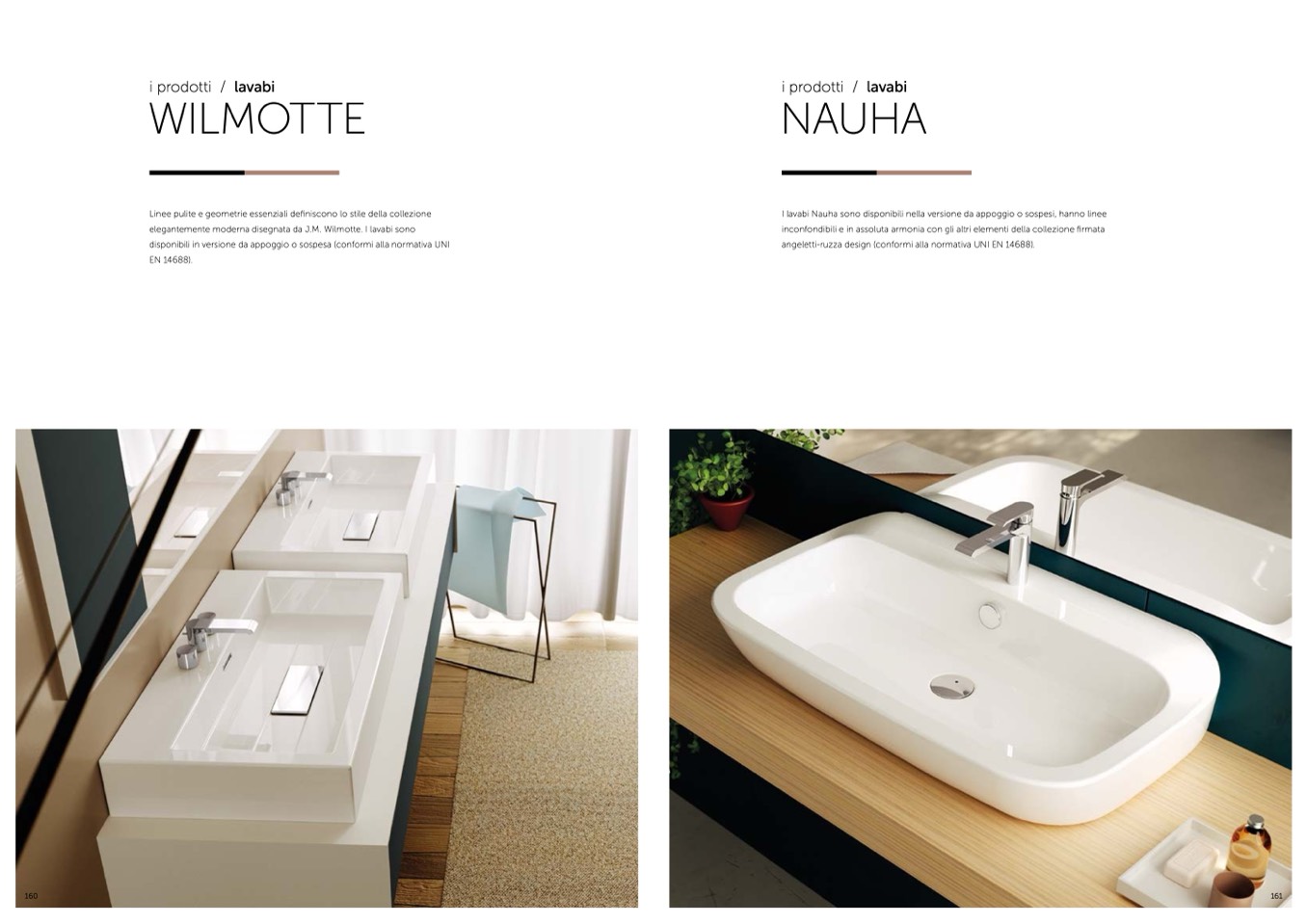 I lavabi Nauha sono disponibili nella versione da appoggio o sospesi, hanno linee