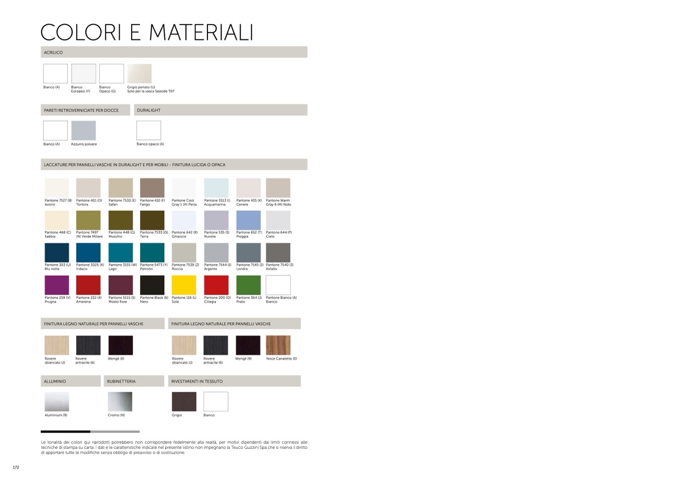 tecniche di stampa su carta. I dati e le caratteristiche indicate nel presente listino non impegnano la Teuco Guzzini Spa che si riserva il diritto