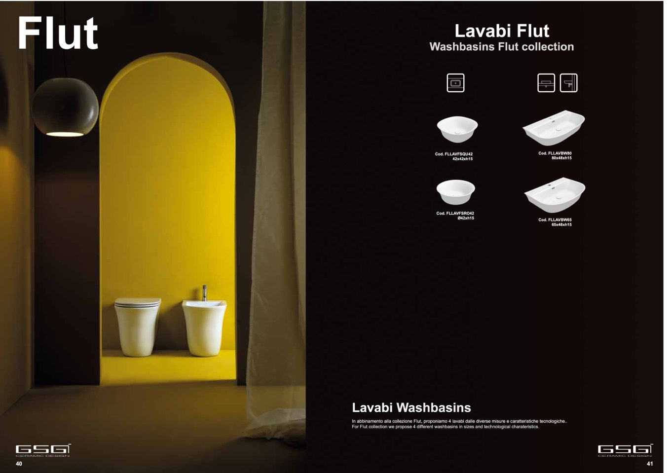 For Flut collection we propose 4 different washbasins in sizes and technological charateristics.