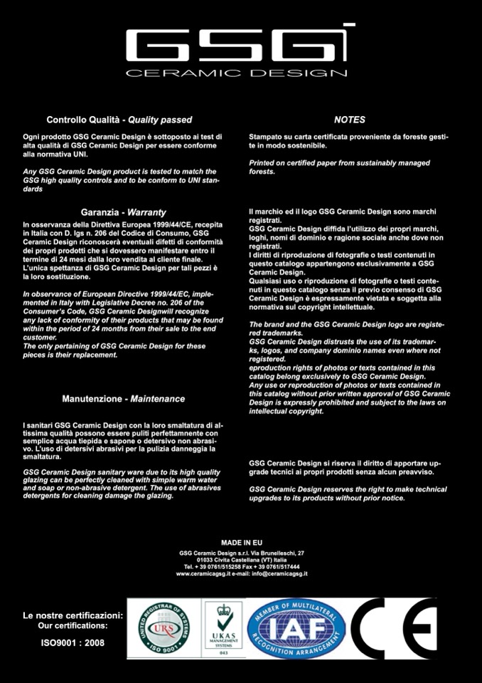 GSG Ceramic Design si riserva il diritto di apportare up-