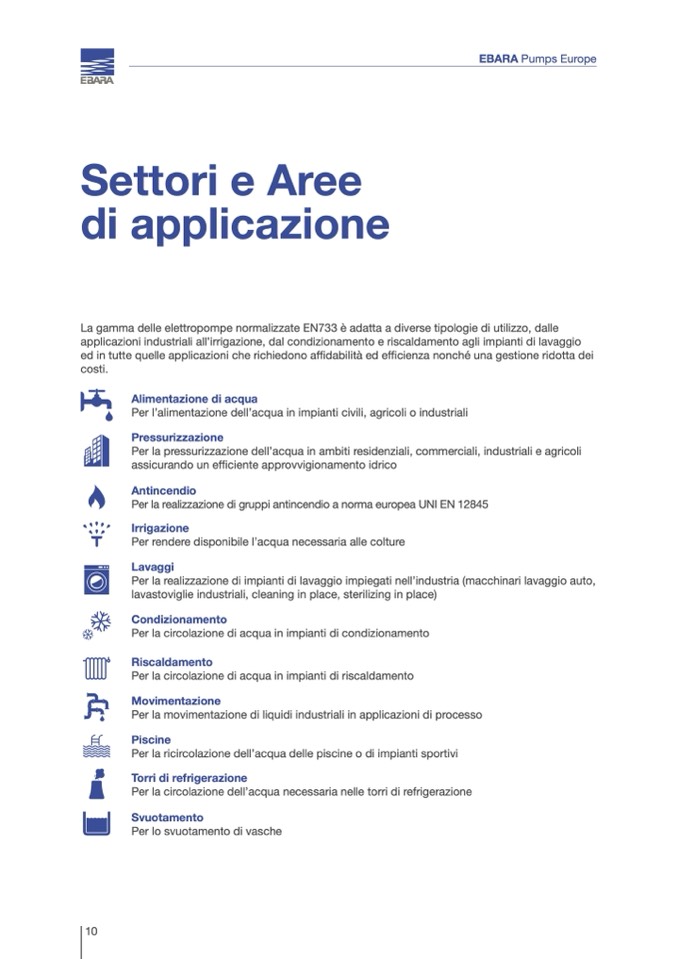 La gamma delle elettropompe normalizzate EN733 è adatta a diverse tipologie di utilizzo, dalle