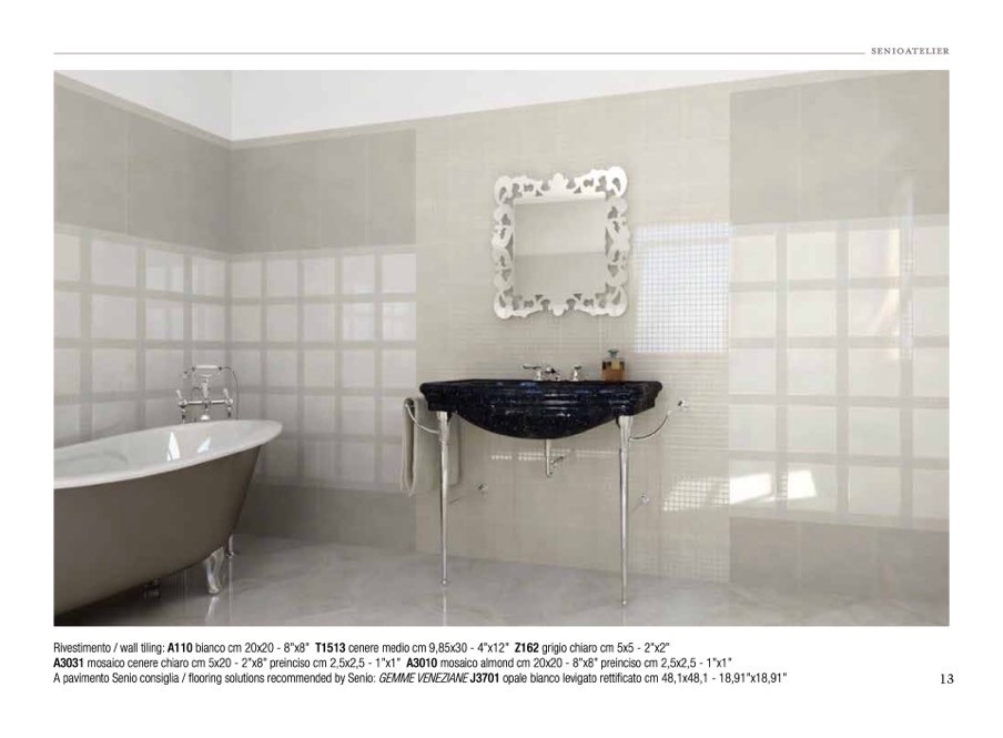 Rivestimento / wall tiling: A110 bianco cm 20x20 - 8”x8” T1513 cenere medio cm 9,85x30 - 4”x12” Z162 grigio chiaro cm 5x5 - 2”x2”