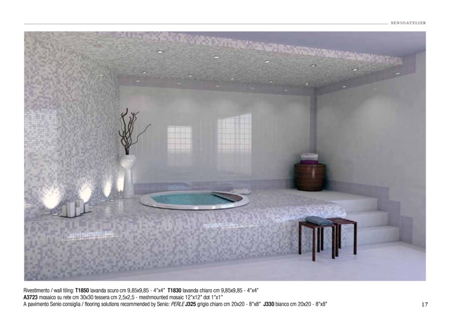 A pavimento Senio consiglia / flooring solutions recommended by Senio: PERLE J325 grigio chiaro cm 20x20 - 8”x8” J330 bianco cm 20x20 - 8”x8”