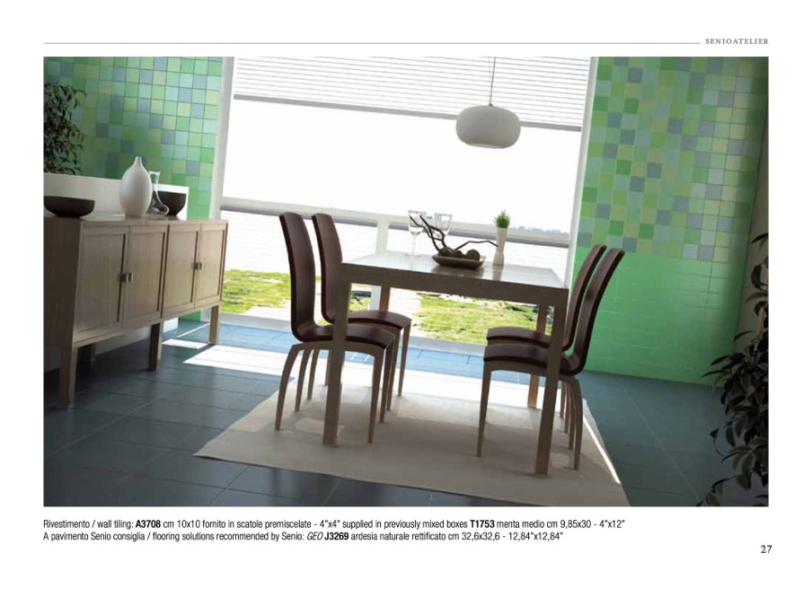 Rivestimento / wall tiling: A3708 cm 10x10 fornito in scatole premiscelate - 4”x4” supplied in previously mixed boxes T1753 menta medio cm 9,85x30 - 4”x12”