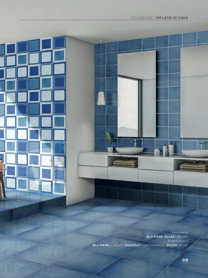 BLU MARE e decoro QUADRATI abbinamento 1 20x20 | 8”x8”
