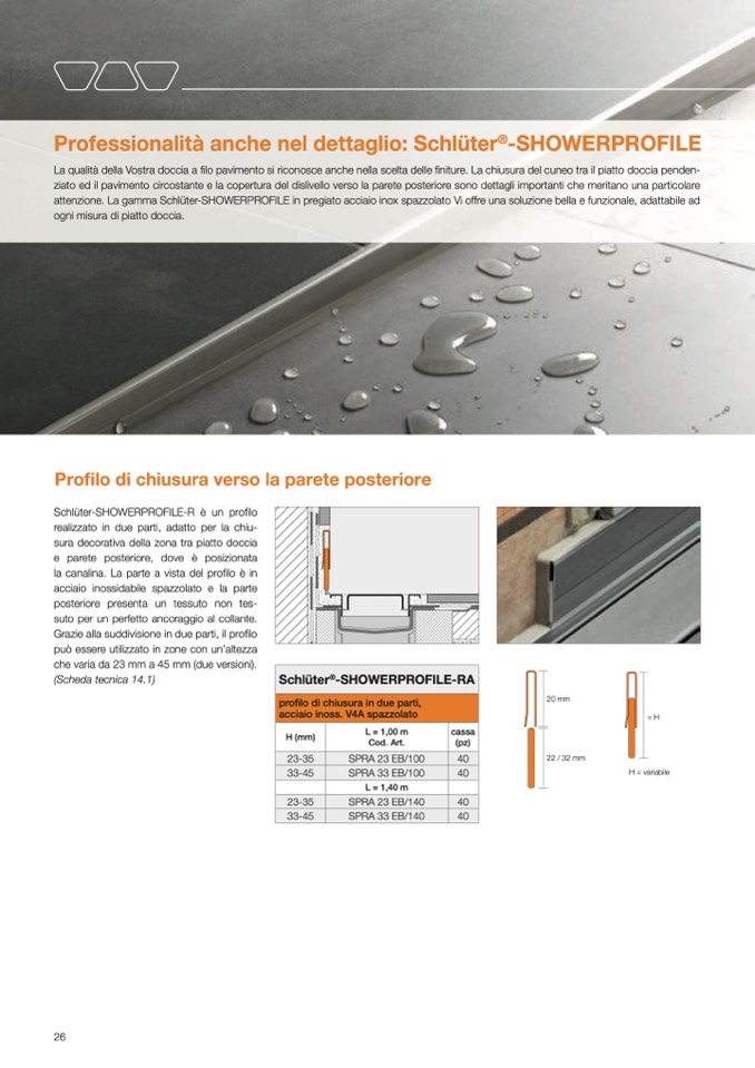 attenzione. La gamma Schlüter-SHOWERPROFILE in pregiato acciaio inox spazzolato Vi offre una soluzione bella e funzionale, adattabile ad