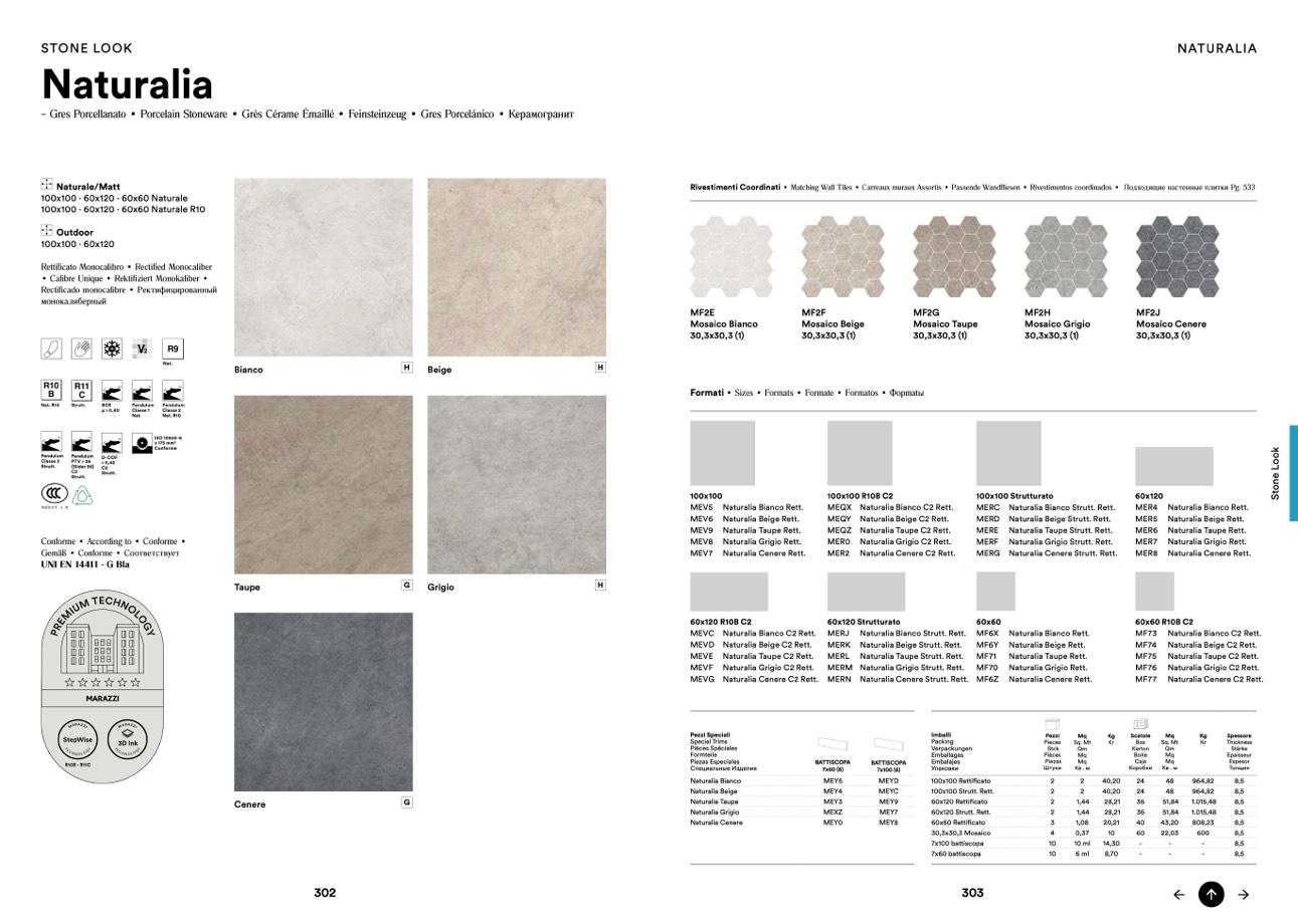 100x100 · 60x120 · 60x60 Naturale R10