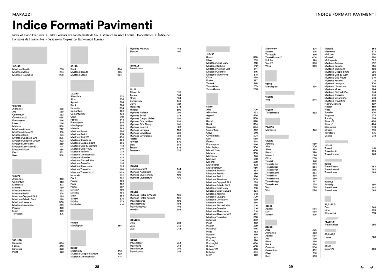 Index of Floor Tile Sizes • Index Formats des Revêtements de Sol • Verzeichnis nach Format - Bodenfliesen • Índice de