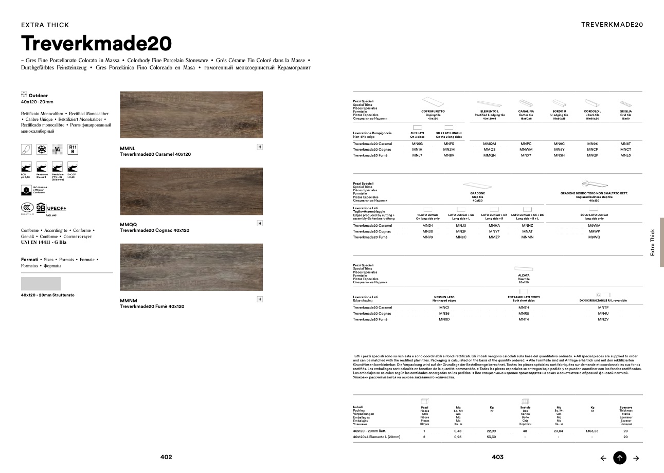 Tutti i pezzi speciali sono su richiesta e sono coordinabili ai fondi rettificati. Gli imballi vengono calcolati sulla base del quantitativo ordinato. • All special pieces are supplied to order