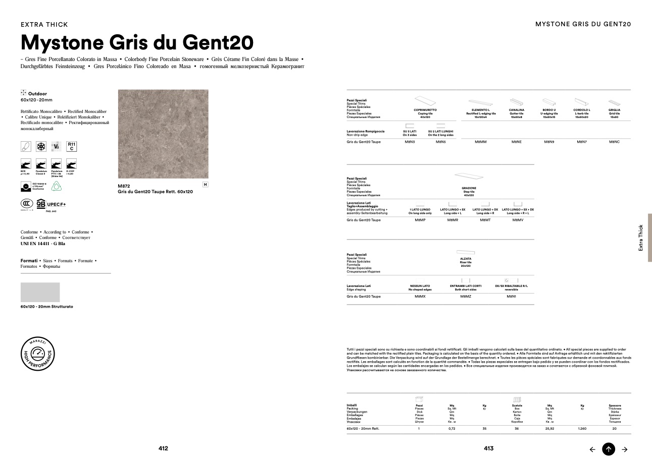 and can be matched with the rectified plain tiles. Packaging is calculated on the basis of the quantity ordered. • Alle Formteile sind auf Anfrage erhältlich und mit den rektifizierten