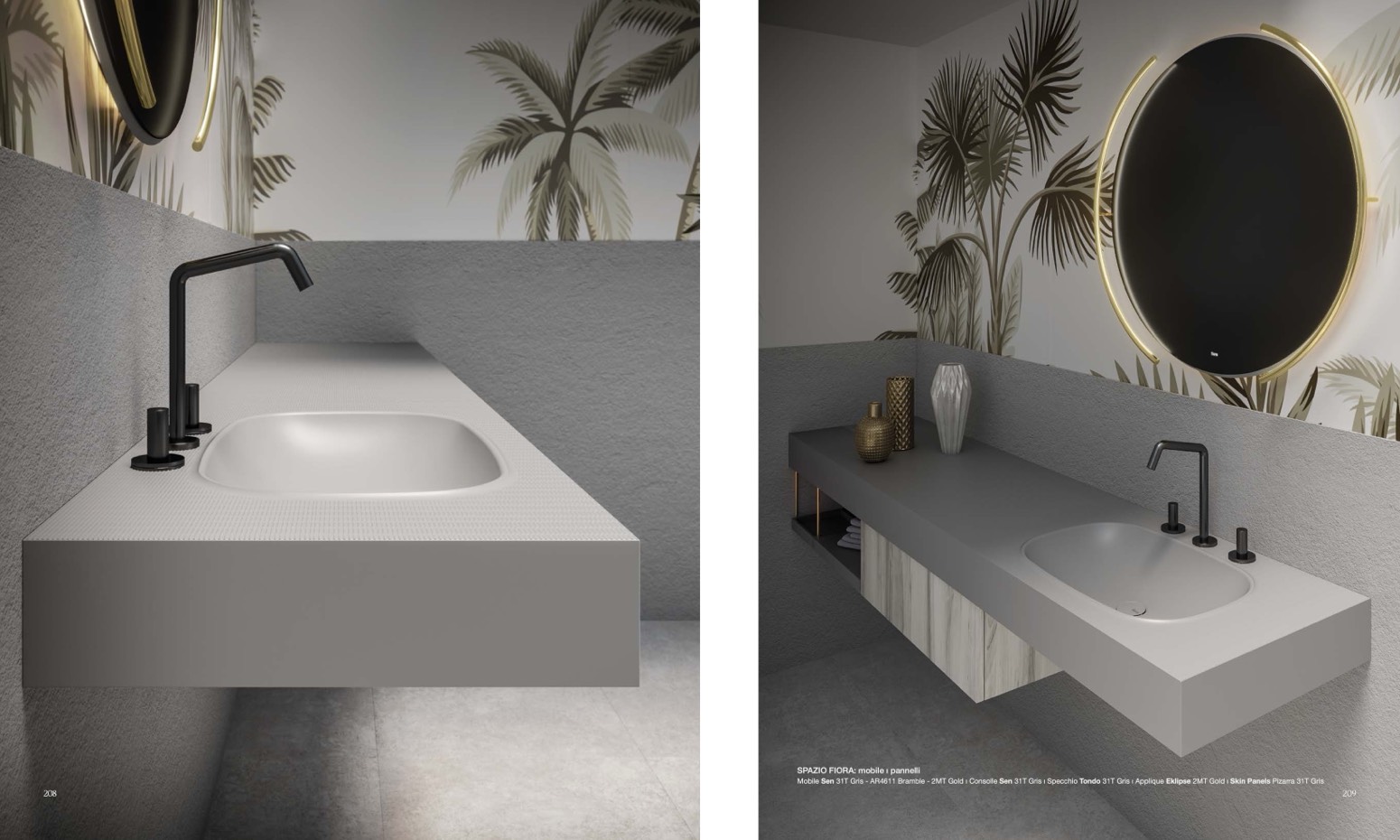 Mobile Sen 31T Gris - AR4611 Bramble - 2MT Gold ı Consolle Sen 31T Gris ı Specchio Tondo 31T Gris ı Applique Eklipse 2MT Gold ı Skin Panels Pizarra 31T Gris