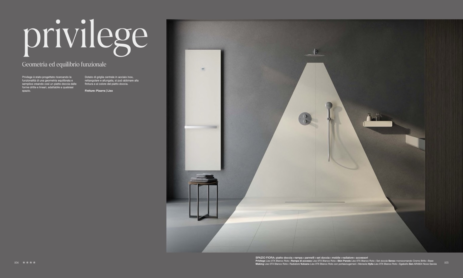 SPAZIO FIORA: piatto doccia ı rampa ı pannelli ı set doccia ı mobile ı radiatore ı accessori