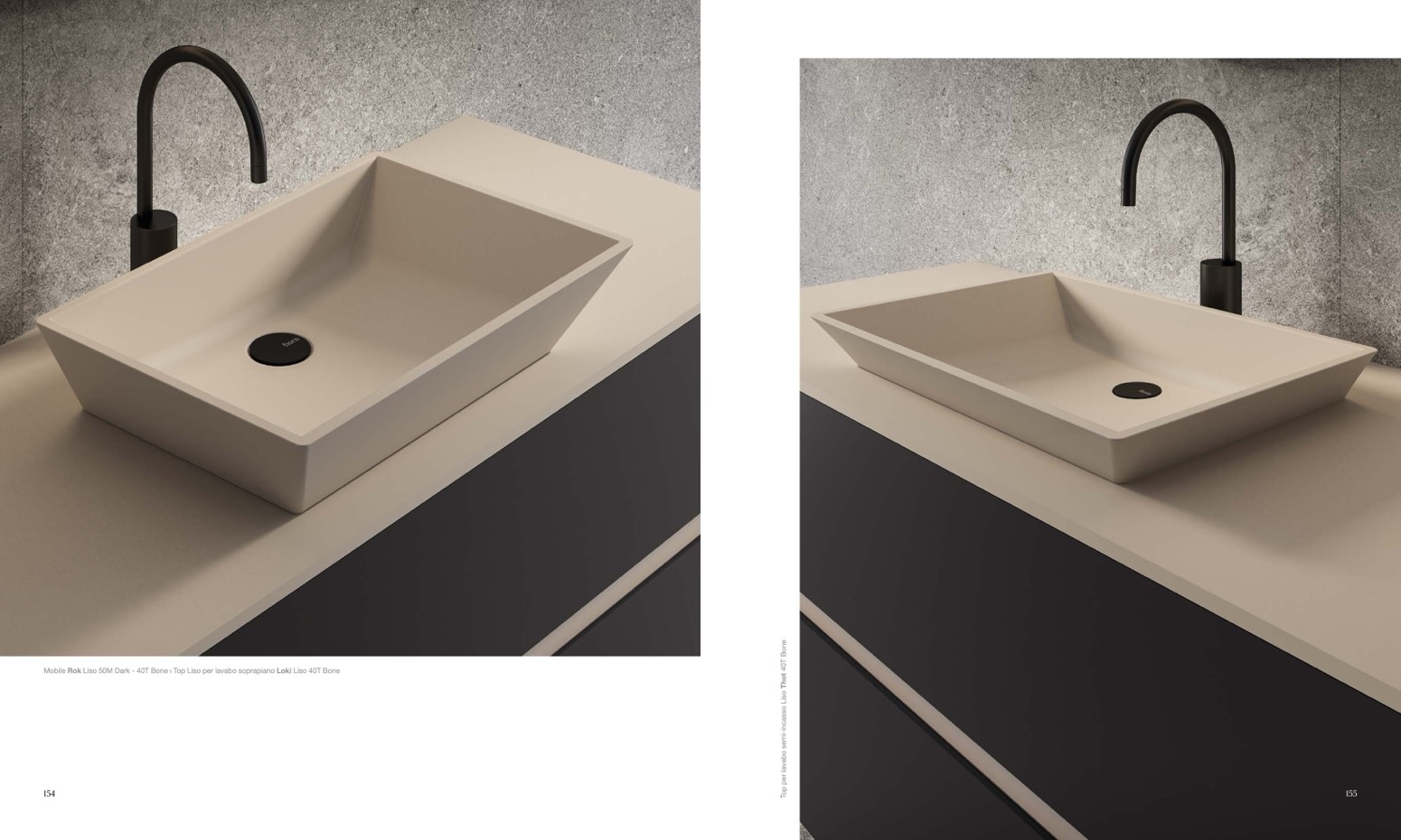Mobile Rok Liso 50M Dark - 40T Bone ı Top Liso per lavabo soprapiano Loki Liso 40T Bone