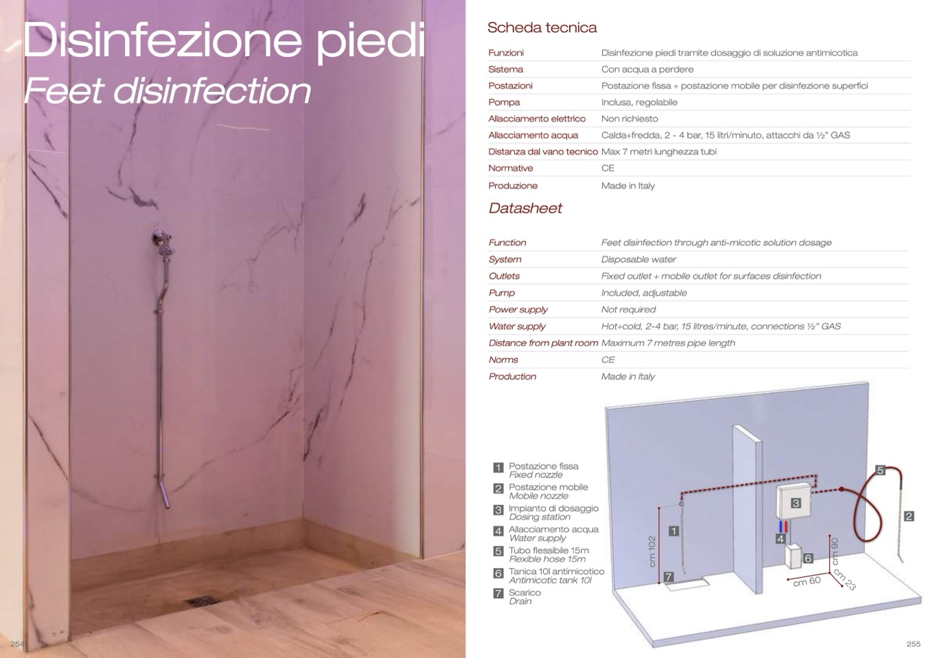 Disinfezione piedi tramite dosaggio di soluzione antimicotica