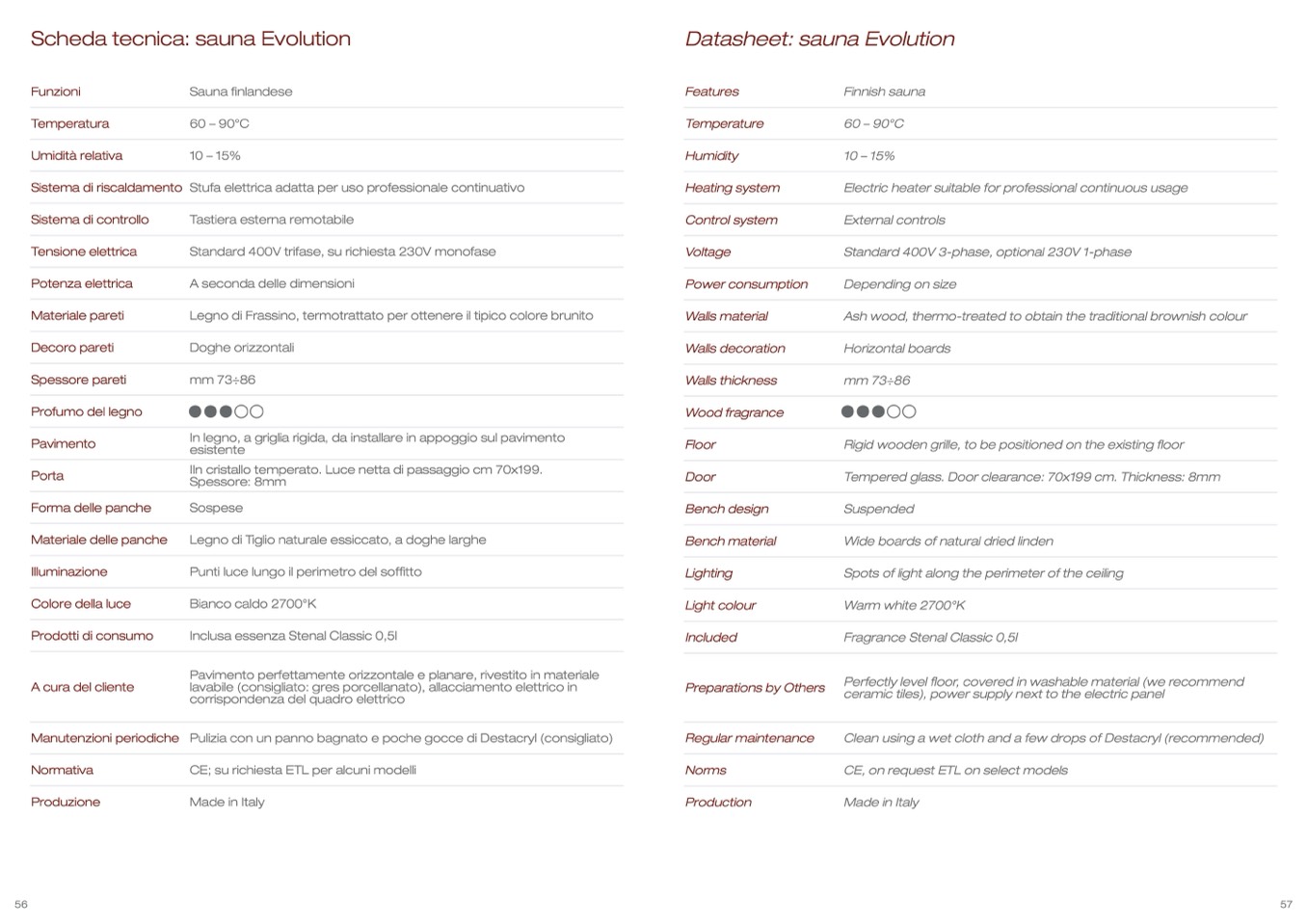 Standard 400V trifase, su richiesta 230V monofase
