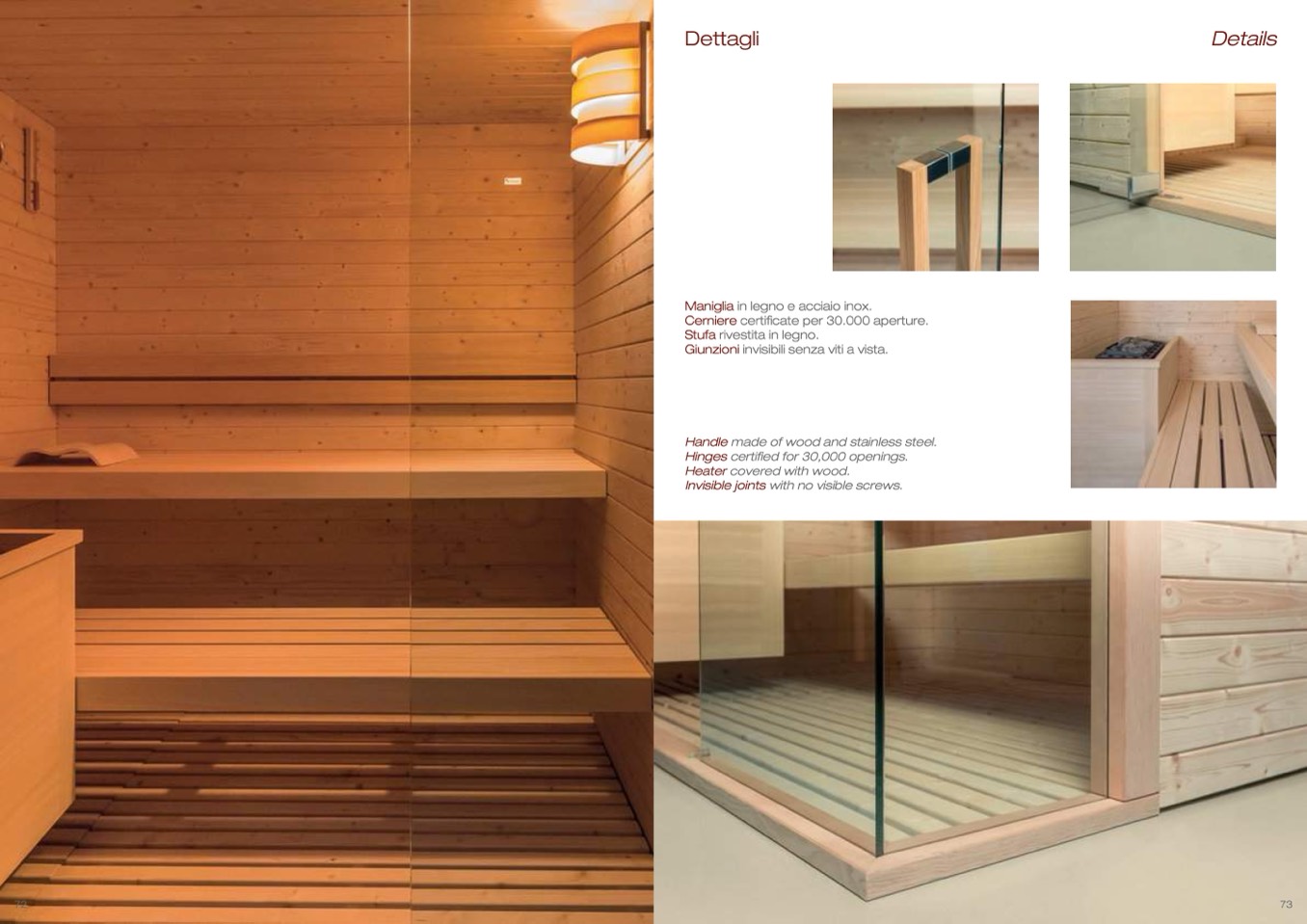 Maniglia in legno e acciaio inox.