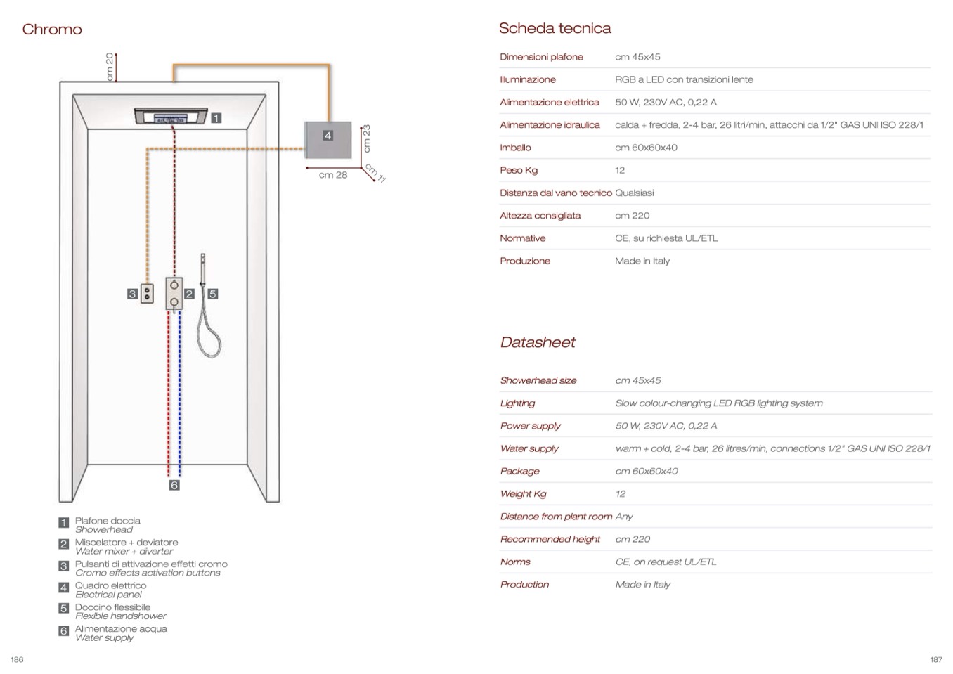 calda + fredda, 2-4 bar, 26 litri/min, attacchi da 1/2" GAS UNI ISO 228/1