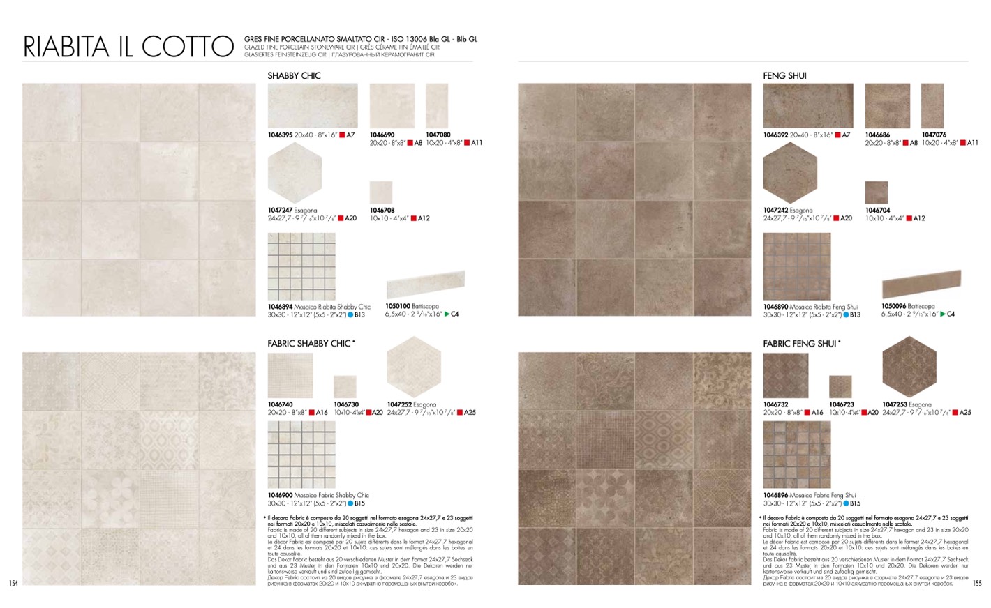 * Il decoro Fabric è composto da 20 soggetti nel formato esagona 24x27,7 e 23 soggetti