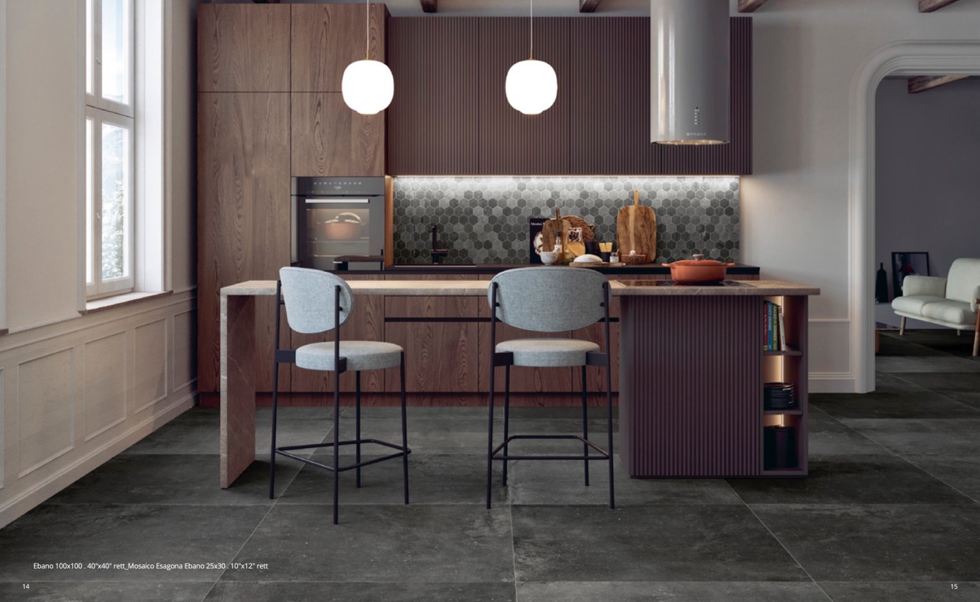 Ebano 100x100 . 40"x40" rett_Mosaico Esagona Ebano 25x30 . 10"x12" rett