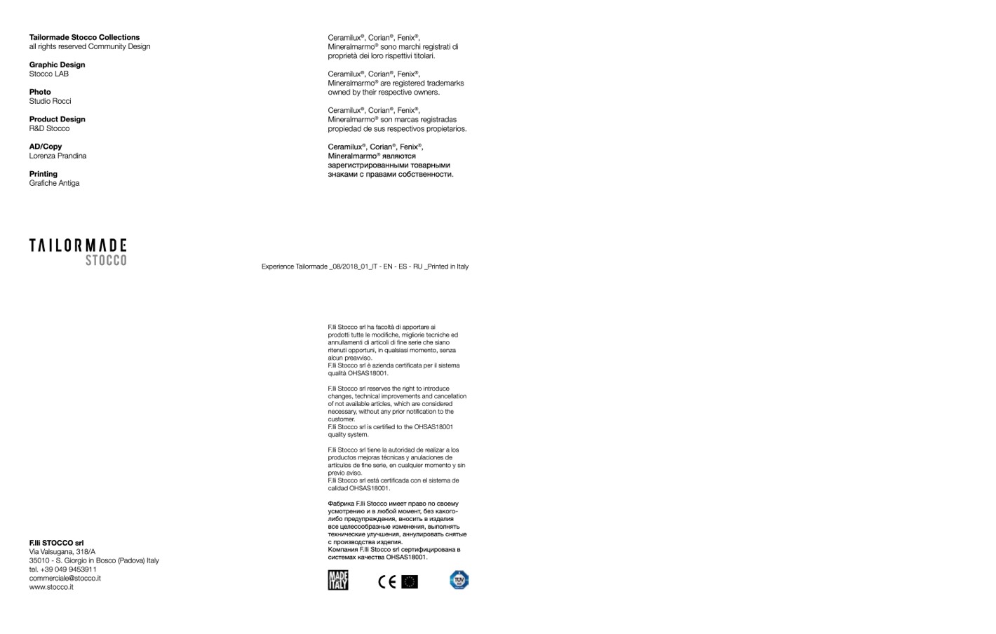 Experience Tailormade _08/2018_01_IT - EN - ES - RU _Printed in Italy