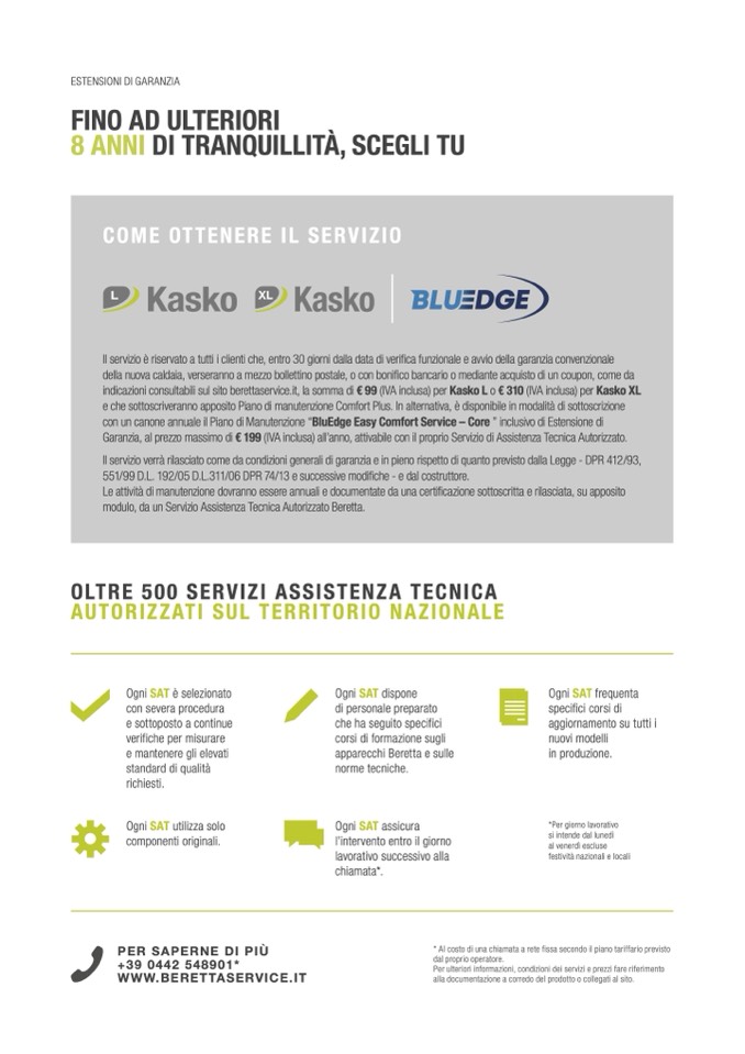 Garanzia, al prezzo massimo di € 199 (IVA inclusa) all’anno, attivabile con il proprio Servizio di Assistenza Tecnica Autorizzato.