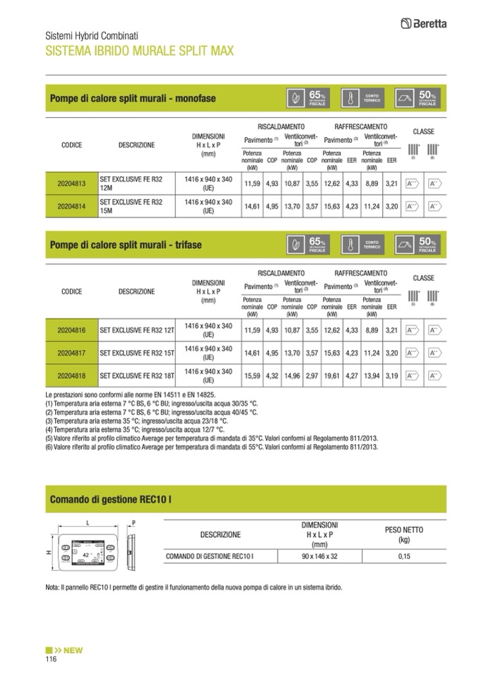 (5) Valore riferito al profilo climatico Average per temperatura di mandata di 35°C. Valori conformi al Regolamento 811/2013.