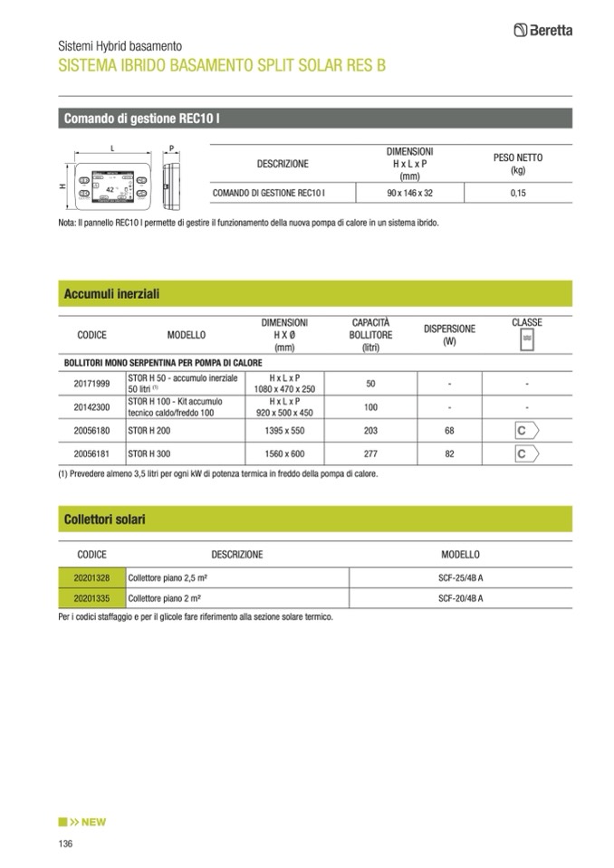 Per i codici staffaggio e per il glicole fare riferimento alla sezione solare termico.