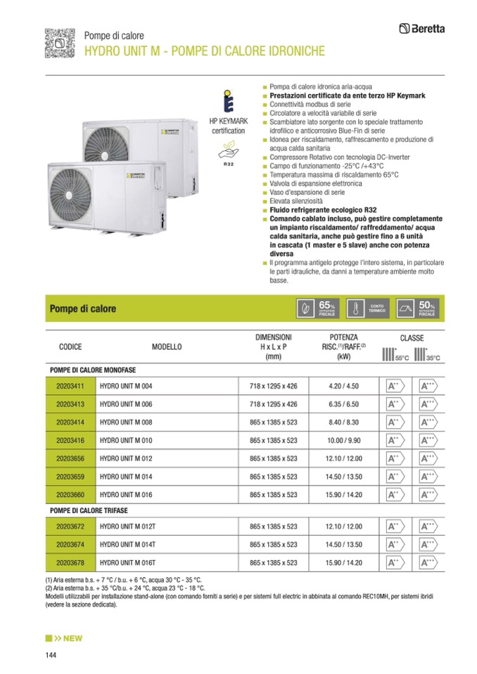 Modelli utilizzabili per installazione stand-alone (con comando forniti a serie) e per sistemi full electric in abbinata al comando REC10MH, per sistemi ibridi